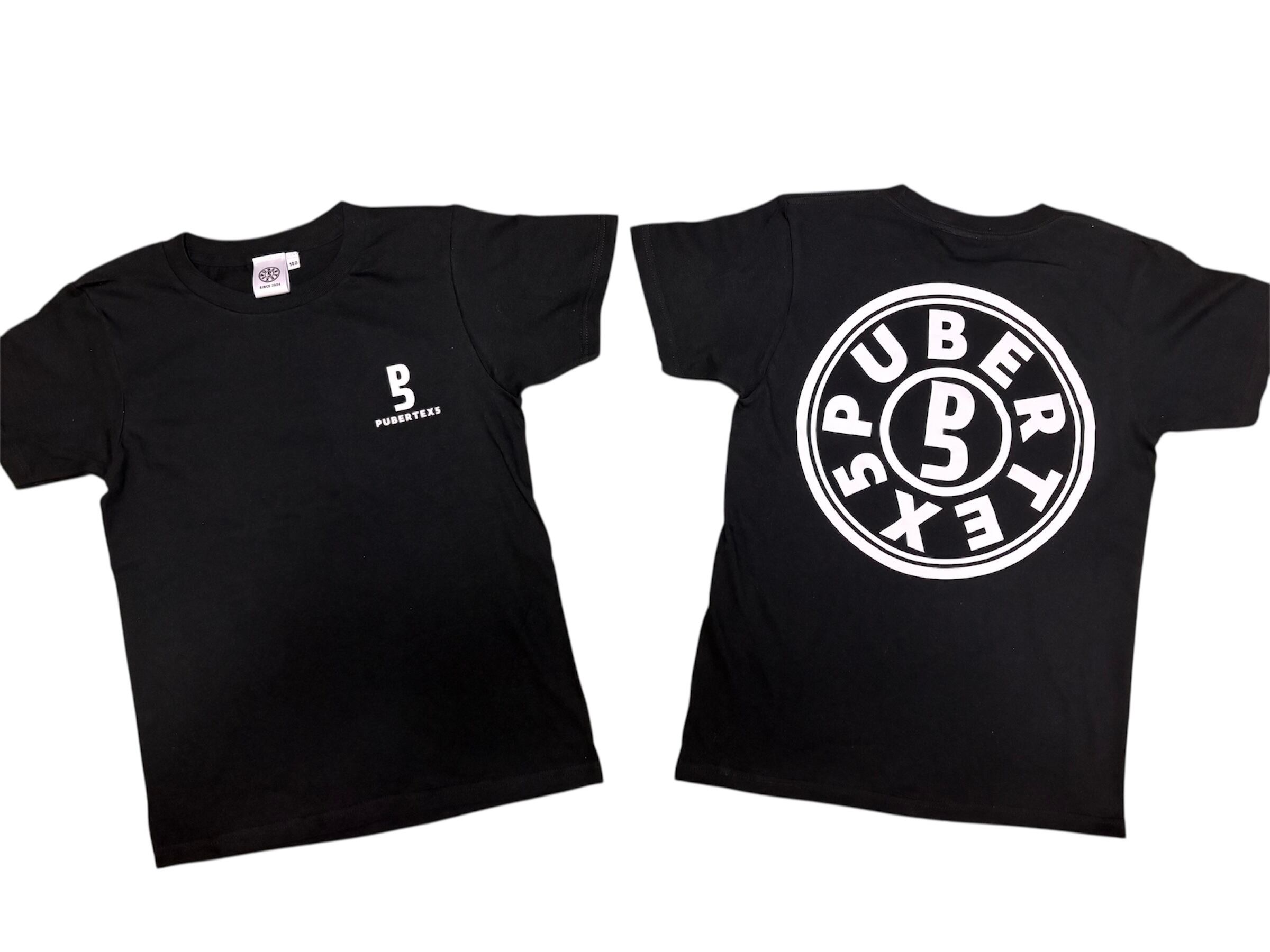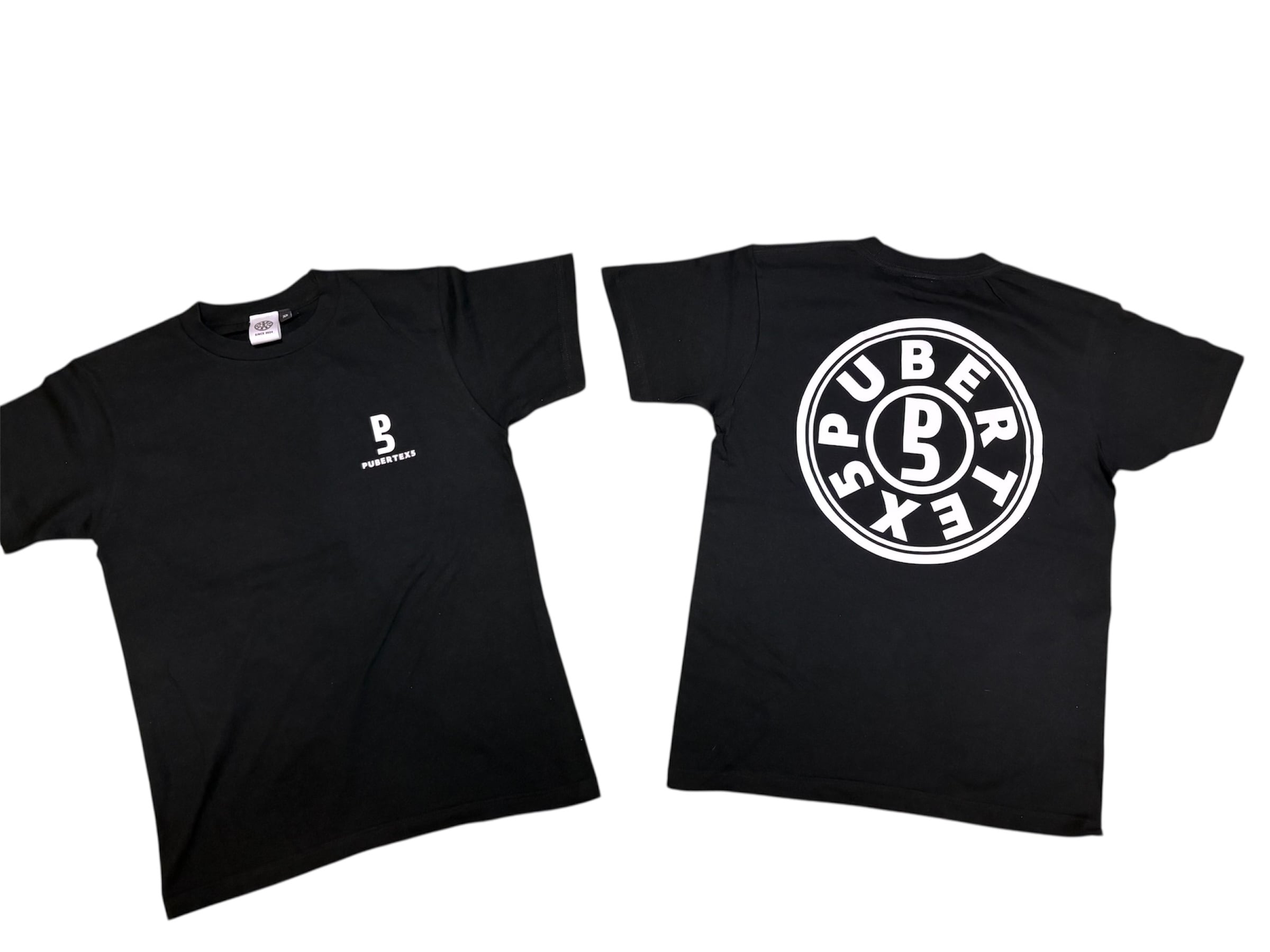 A black-based T-shirt with striking white accents.
