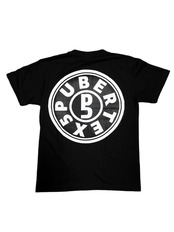 A black-based T-shirt with striking white accents.